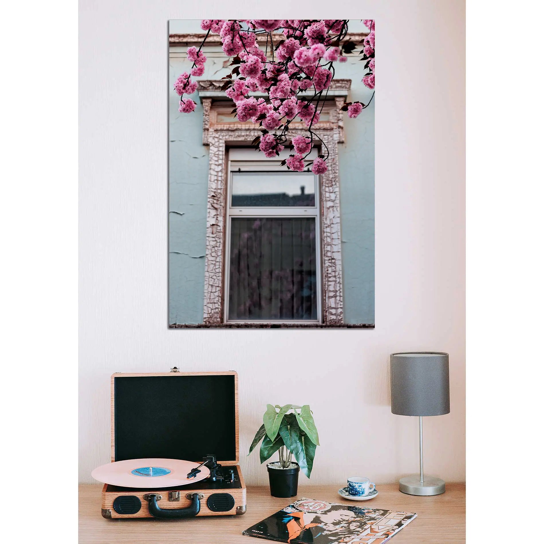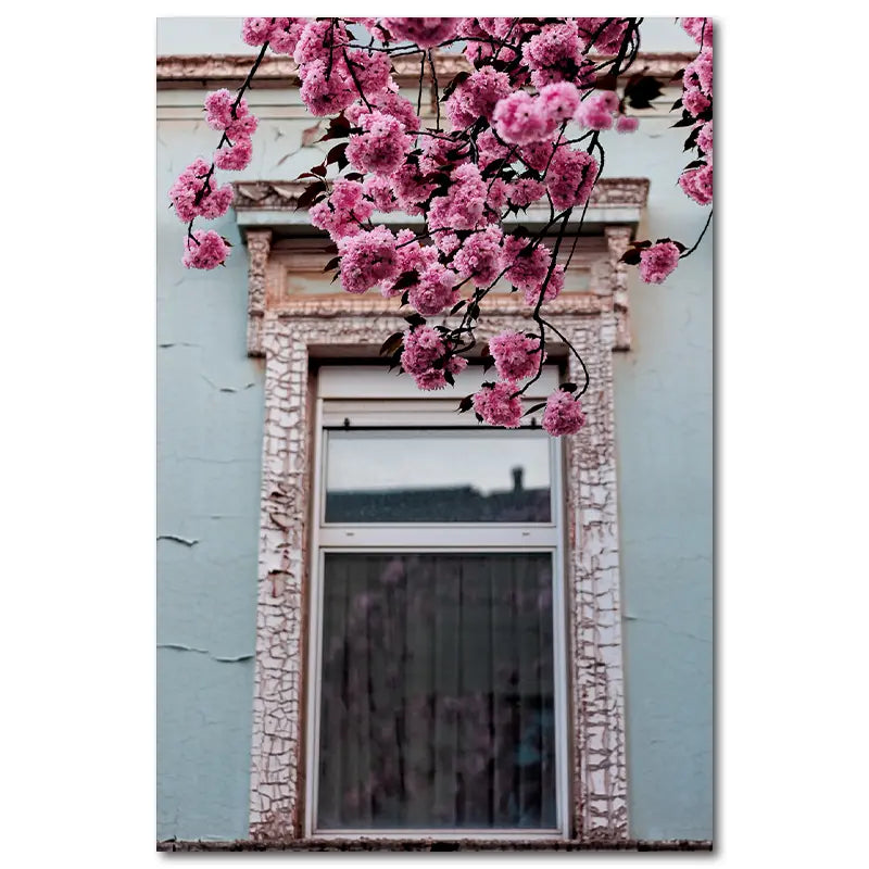 Kirschblüten vor altem Fenster